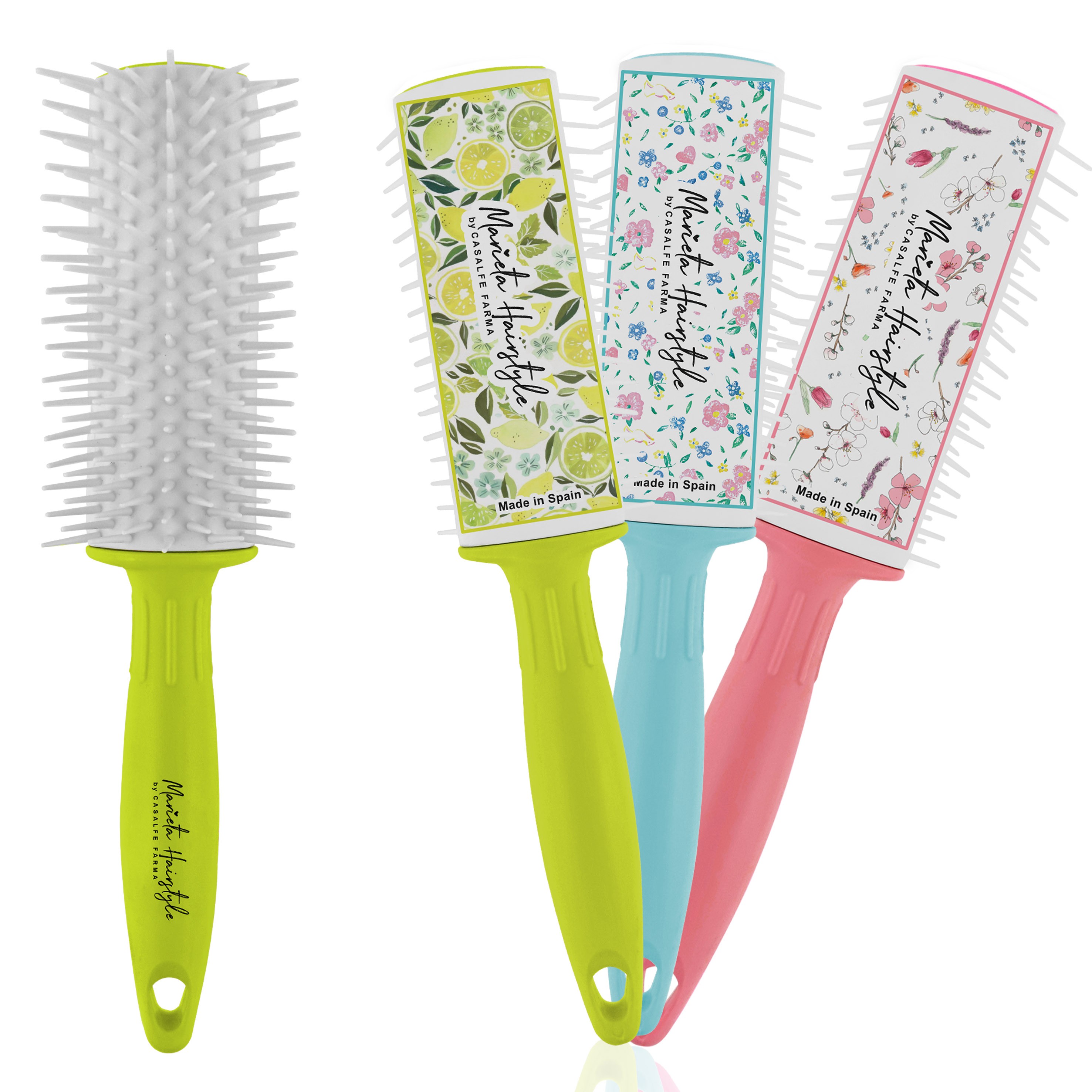 Consejos de uso: elimina el exceso de agua para que los productos se adhieran bien a la fibra cuando los distribuyas con el cepillo. Además eliminar el exceso de agua también reducirá el tiempo de exposición al calor del secador. Se aconseja el uso de difusor. El cepillo soporta altas temperaturas. Fabricado en España.