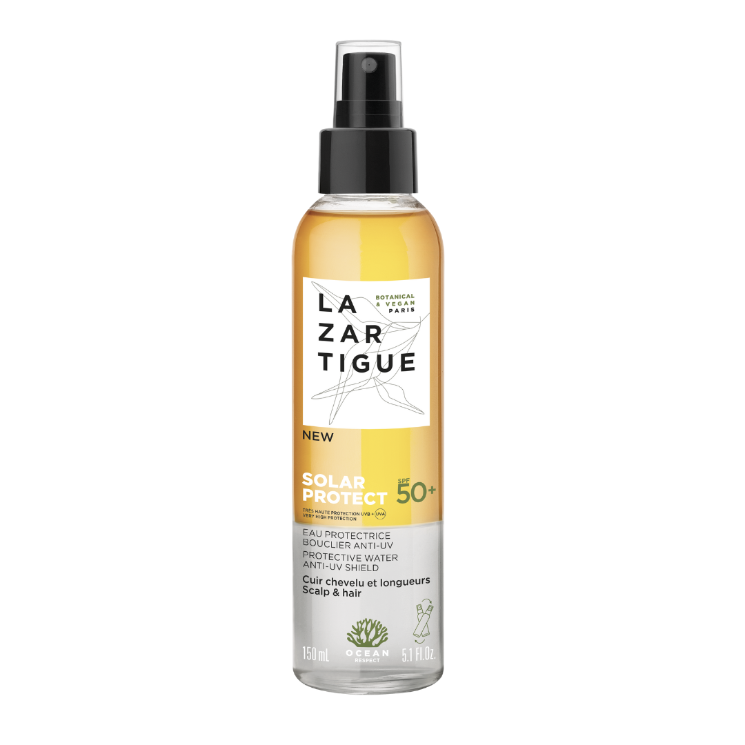 Agua solar protectora con escudo anti-UV, con SFP 50+ qiue hidrata y protege tanto el cuero cabelludo como la fibra capilar, del sol, de la sal y de la arena.