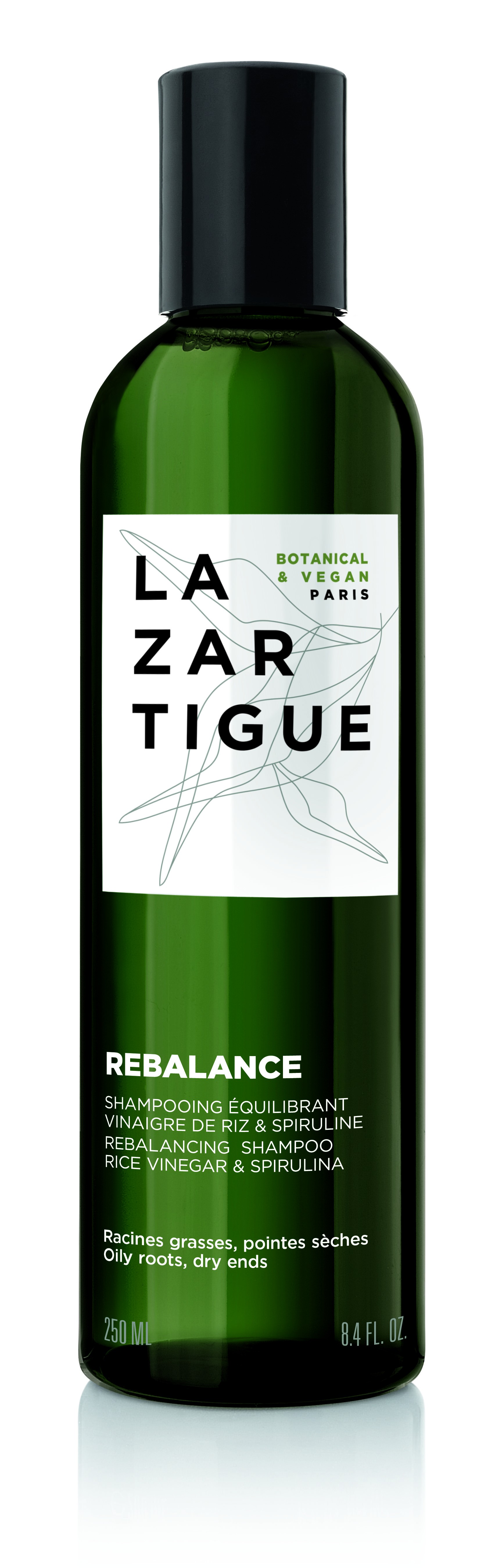 Champú reequilibrante del cuero cabelludo. Gracias a los extractos de vinagre de arroz y espirulina, purifica el cuero cabelludo mientras hidrata la fibra capilar y las puntas secas. Esta fórmula equilibra la fibra y el cabello recupera la suavidad y el brillo. Este champú permite reequilibrar el sebo desde las raíz a las puntas. Cuando la distribución del sebo es desigual, la raíz aparecen engrasadas y las puntas secas. Un champú reequilibrante en estos casos en lo ideal.
