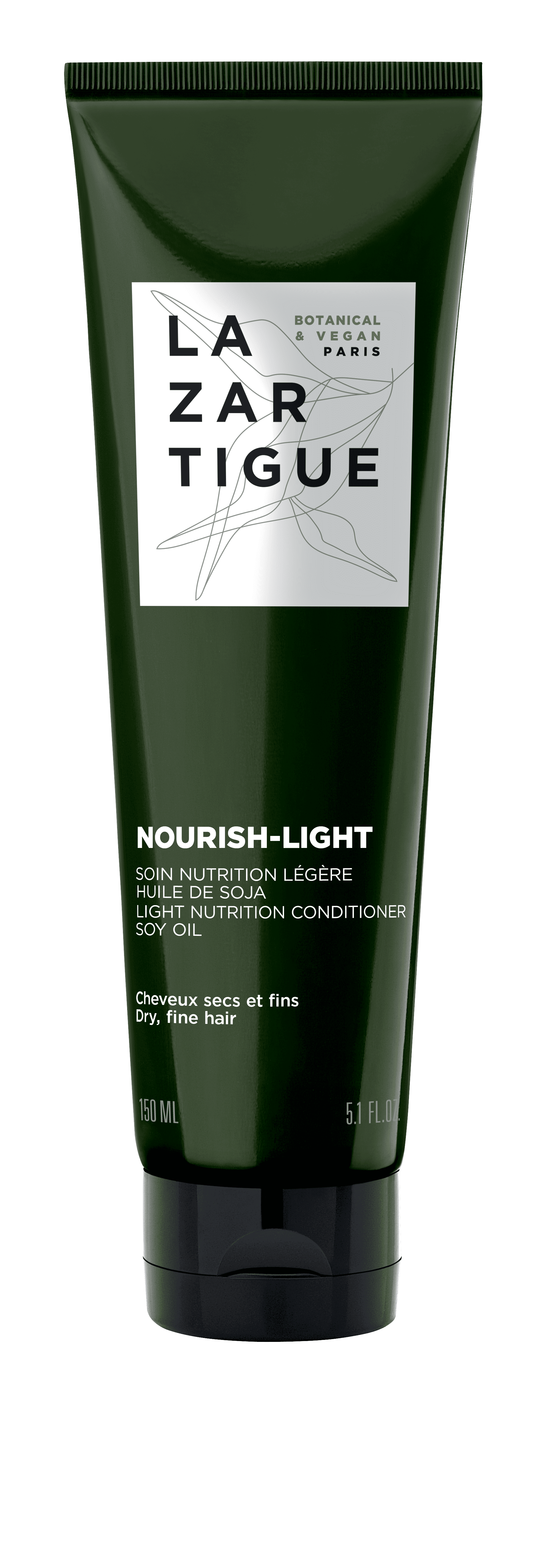 Acondicionador Nourish Light de Lazartigue racias l ceite de soja permite nutrir la fibra capilar sin apelmazarla, ideal en cabellos finos. El cabello recupera su nutrición y aparece más flexible y brillante.
