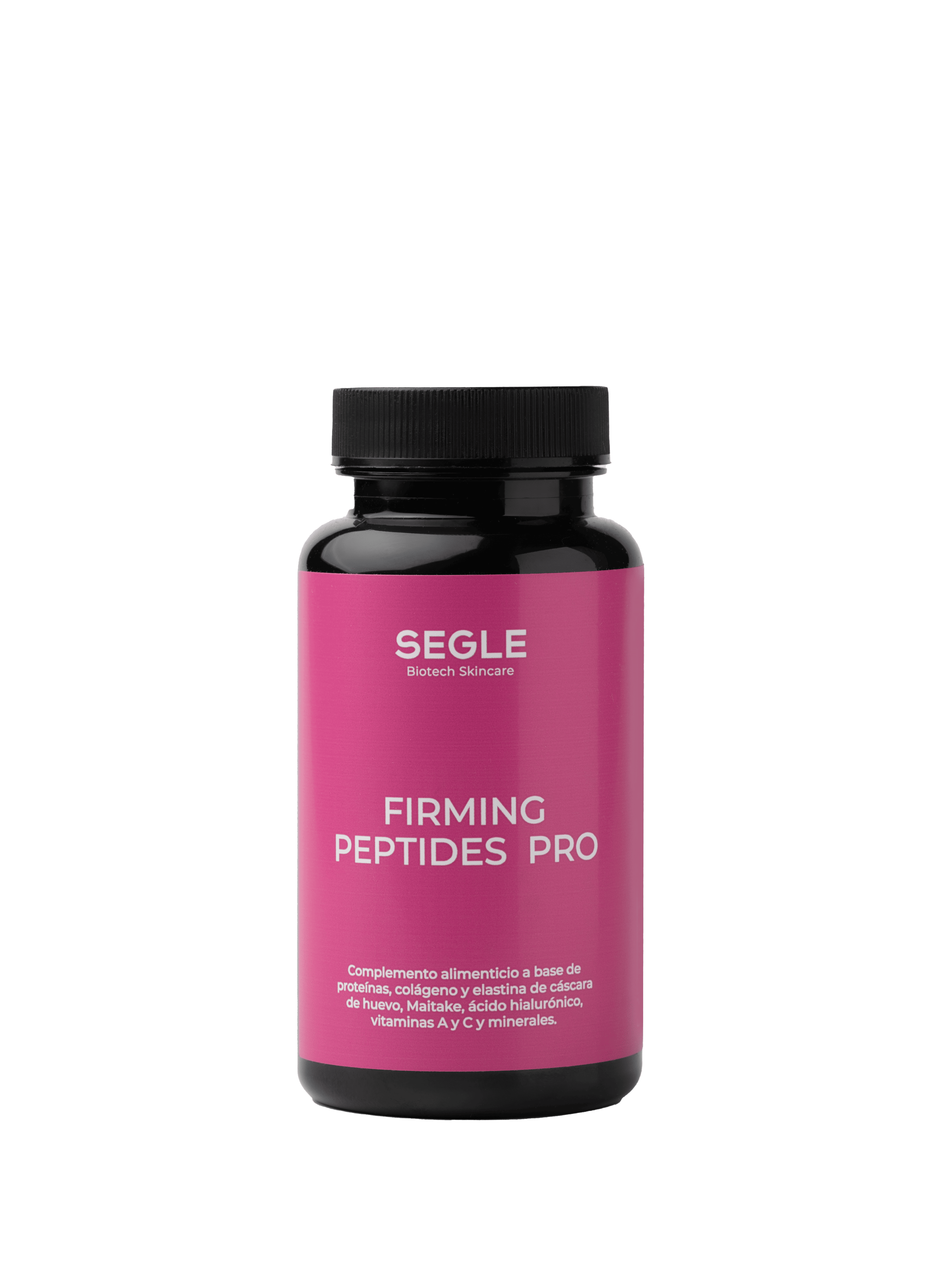 FIRMING PEPTIDES PRO es un complemento alimenticio con acción antiedad gracias a su composión que incluye: colágeno, elastina y retinol, esto le confiere actividad reafirmante, antiarrugas, antioxidante y antiinflamatoria a nivel de la piel. Efectos visibles tras el primer mes de tratamiento