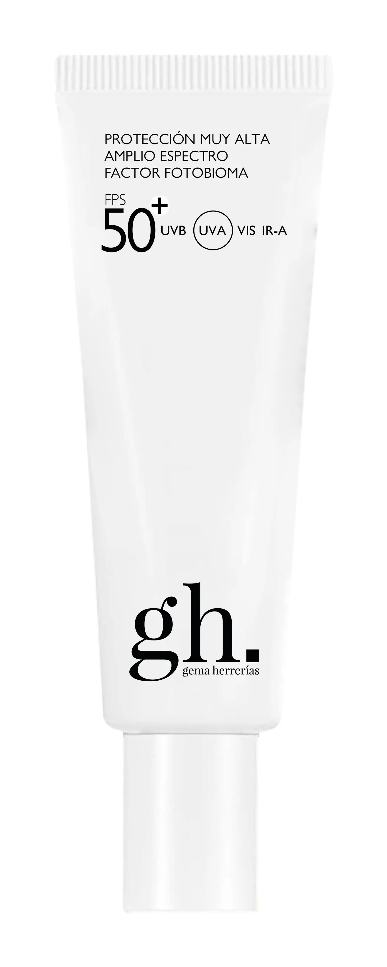 gh FPS50+ protección solar muy alta de amplio espectro sin color 50+ UVA VIS IR-A con factor fotobioma.